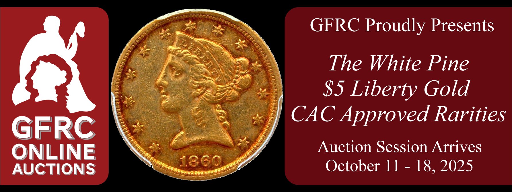 The final GFRC Online Auctions event of 2025 has arrived and what a way to close out a very memorable numismatic year. The first half of 2025 brought a three auction session release of the Gerry Fortin Liberty Seated Dime Collection in conjunction with the Newtown Liberty Seated Half Dollar Collection. Many record prices were achieved for this long term projects. The just completed Massachusetts Liberty Seated Dime Collection auction coupled with the Tenafly Seated Dimes and $5 Liberty gold brought another spectacular 250 lot event. Now, GFRC is thoroughly pleased to be offering a magnificent assemblage of early $5 Liberty Charlotte and Civil War rare dates with nearly all lots being CAC approved. In parallel, the Island City Collection has made a command decision to release his long term United States 18th and 19th century copper, silver and gold type set. This release is also a treasure trove of top end CAC approved lots that should garner considerable bidding.