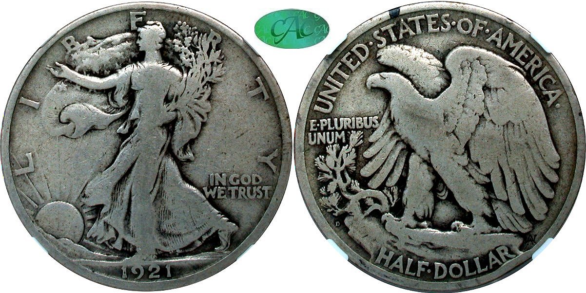 Walking Liberty 50C 1921D 1921-D