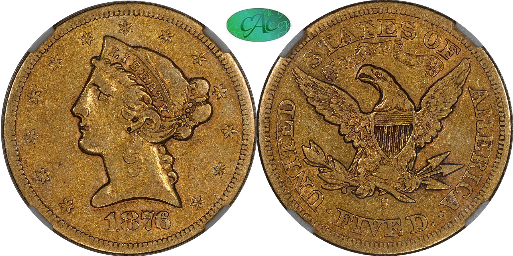 Choice $8750 New February 19! Tough Date with only about 100 Known. This is one rare Liberty half eagle with an estimated 100 known in any grade. The coin has an attractive orange glow with only scattered marks. This is one of just two at this grade level with a CAC sticker with just four higher. With a CPG Value of $9,750, this is a reasonably priced example.