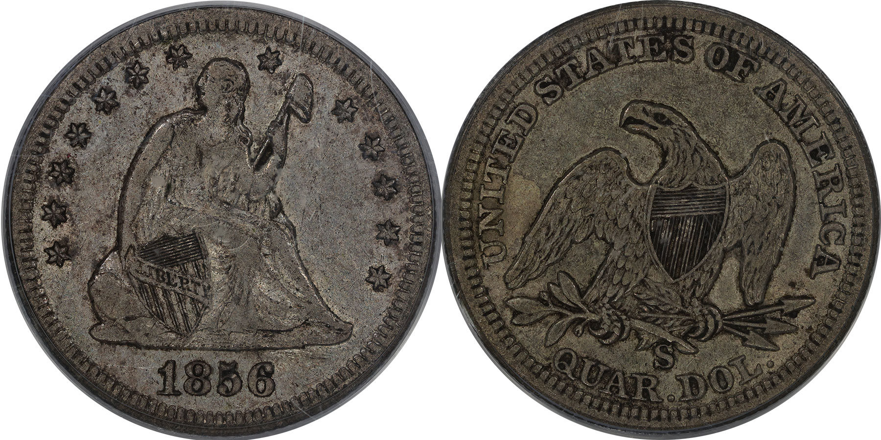Briggs 2-C Choice $2900 New March 19! Crusty Antique Gray, Early San Francisco Issue, Choice Original, Lasalle Collection. Consignor Price Reduction - The Seated community is well aware of the historical significance of initial San Francisco mint issues as nearly all went into western fronter circulation. Choice survivors are a prize as is the case for this 1856-S survivor from the Lasalle Collection. Worthy of it GFRC-Choice quality rating, this lot presents silver-gray colored surfaces that are undoubtedly original. Further valuation arises from "dirt" with the protected areas. The date is very scarce is EF and rare in AU rendering this offering as being quite compelling. Housed in a PCGS Gen 4.4 (2005-2011) holder.
