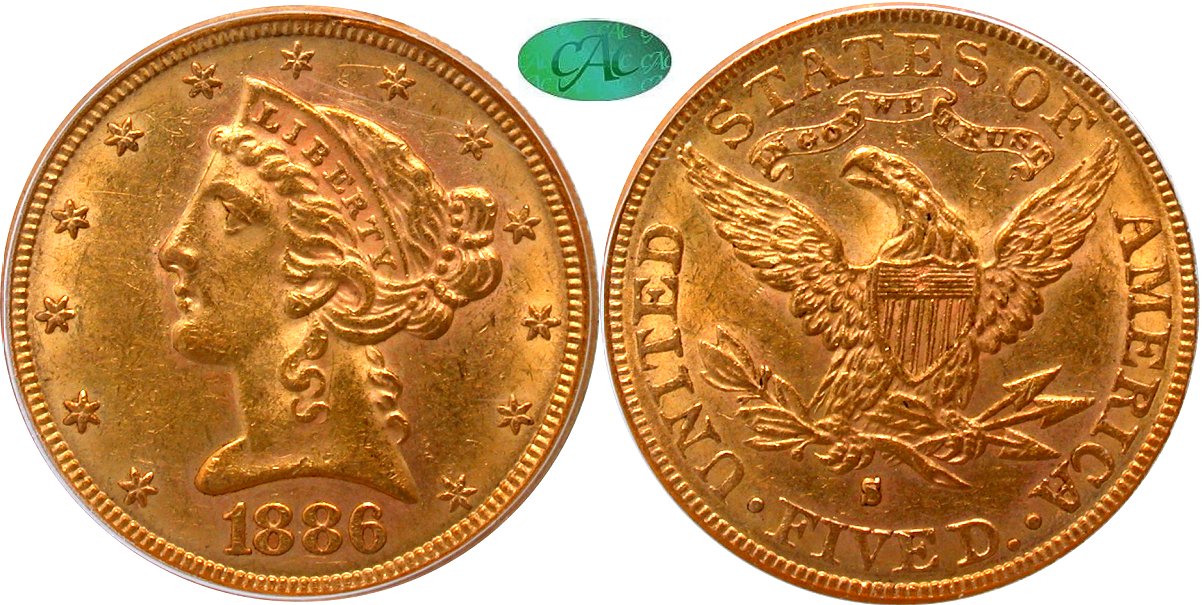 Gold G$5 1886S