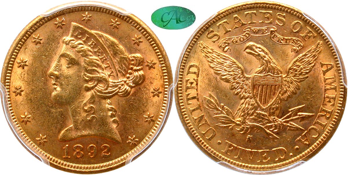 Gold G$5 1892S