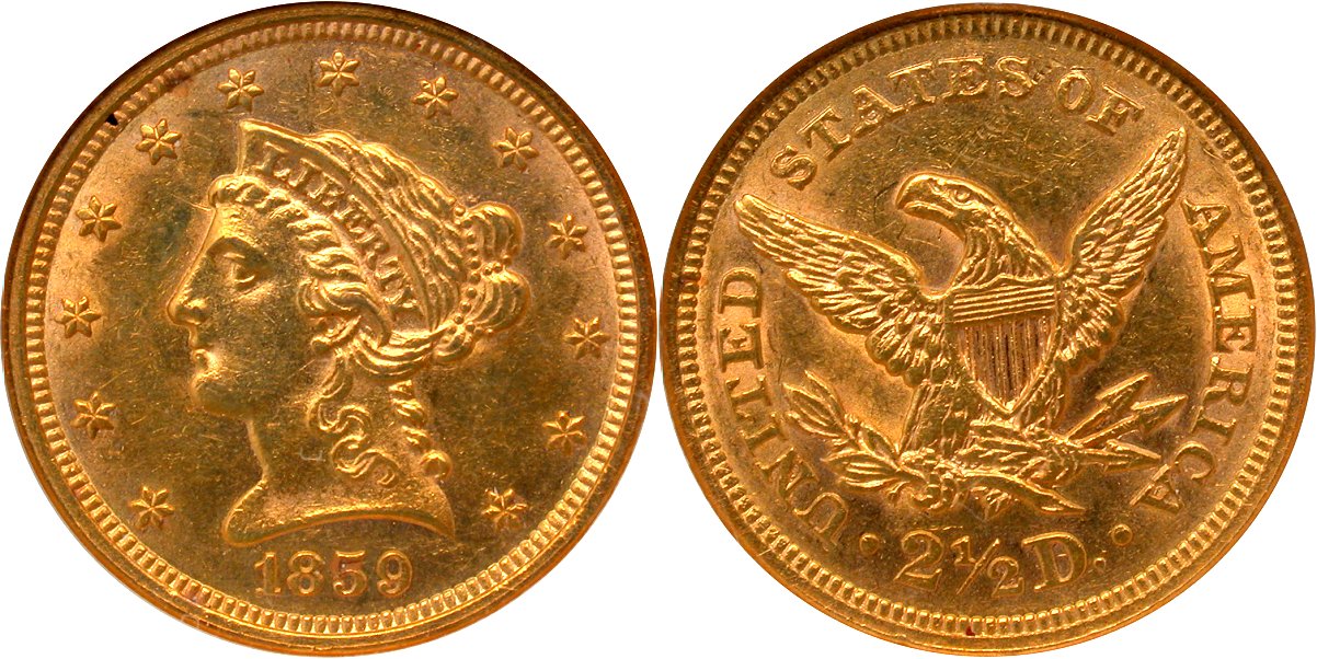 Gold G$2.5 1859D