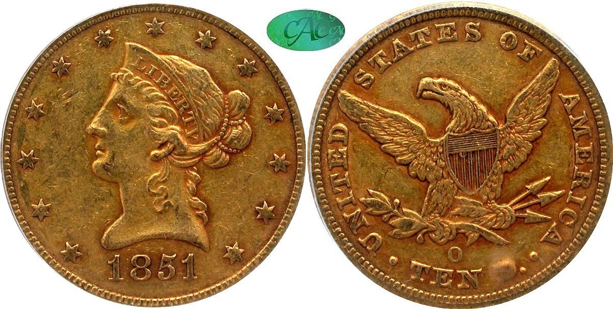 Gold G$10 1851O