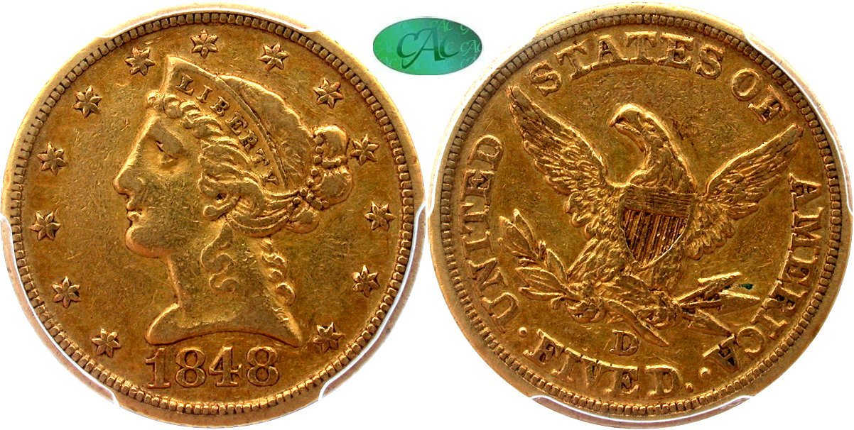 Gold G$5 1848D