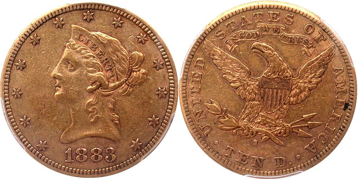 Gold G$10 1883S