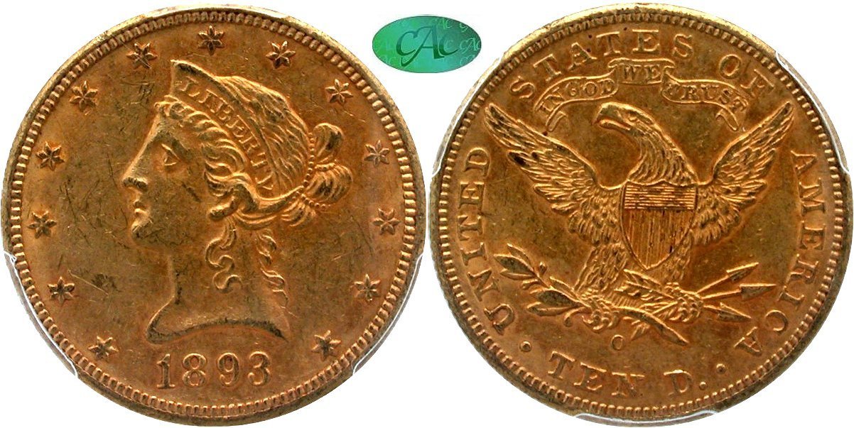 Gold G$10 1893O