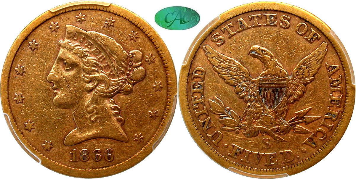 Gold G$5 1866S