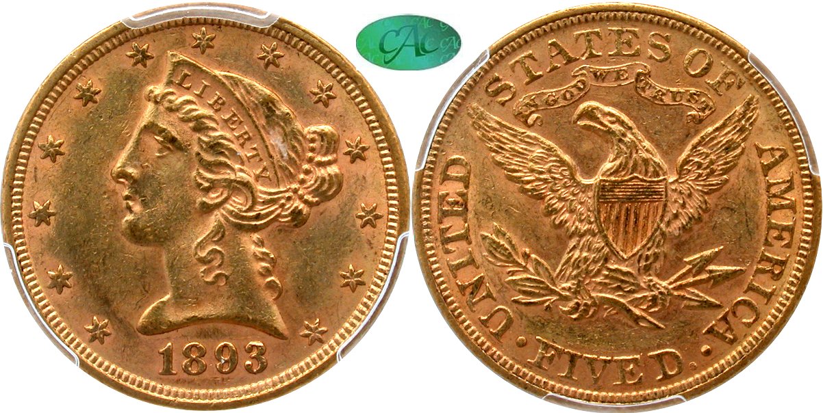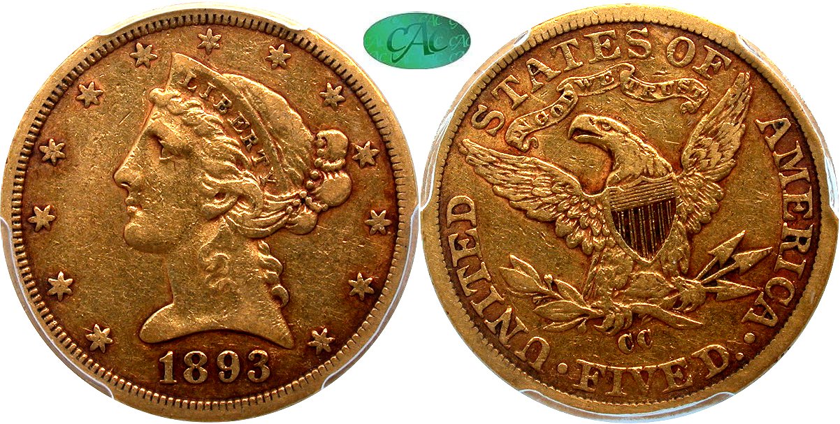 Gold G$5 1893CC