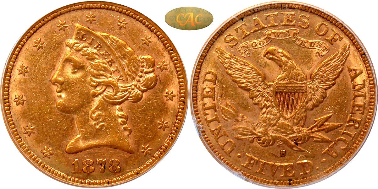 Gold G$5 1878S