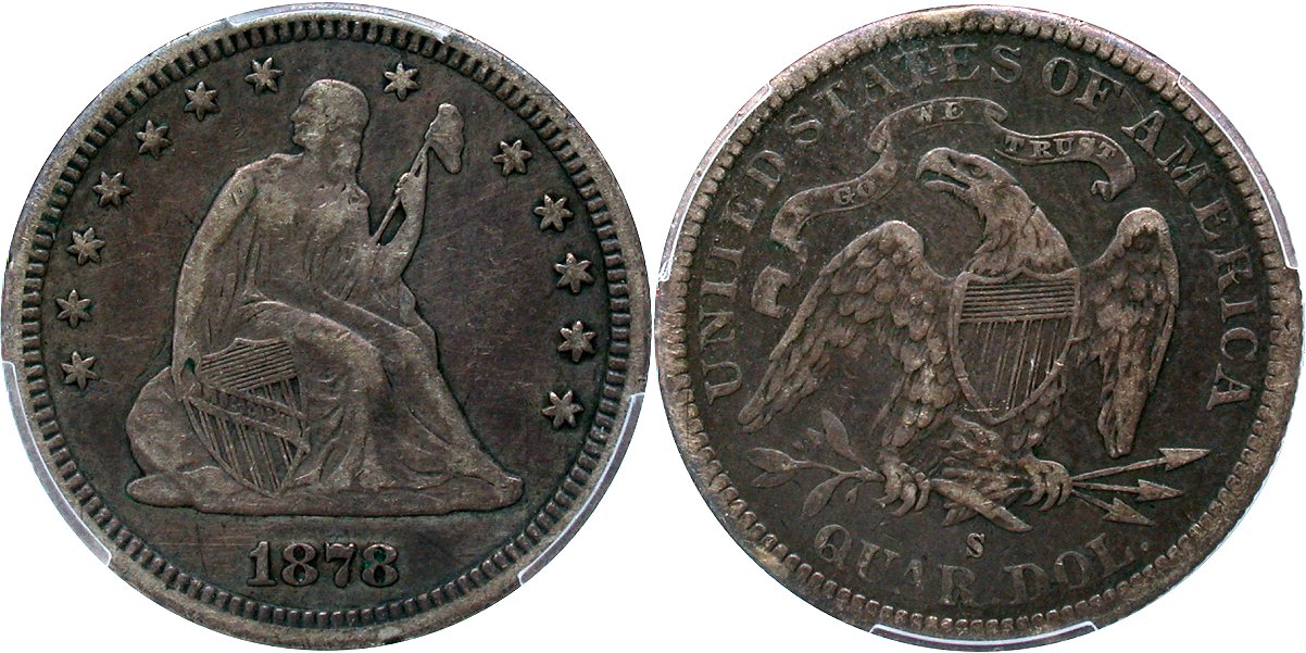 GFRC Open Set Registry - BIG BLUE 1878 Seated  25C 2-B. A pleasing mid-grade example with nice color and tone. Harder to locate that 76\\\\\\\47 or 77\\\\\\\47 but available.