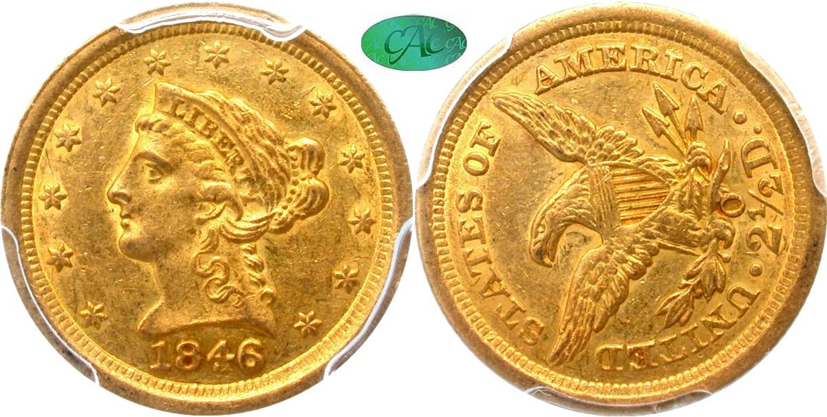 GFRC Open Set Registry - Oregon Beaver 1846 Gold Liberty G$2.5 PCGS Survival: Est: 175. Gem Original.\\\\r\\\\nRotated Reverse 90 degrees left. \r\n \\\\r\\\\nAkers::\\\\\\\\\\\\\\\" Very scarce in grades better than EF\\\\\\\"/ Winter: \\\\\\\\\\\\\\\"Rare in